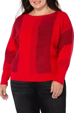 Make a fashion statement with this colorblocked dolman sweater! This sweater is both elegant and comfortable, perfect for a night out on the town or a cozy night in! Dress it up with your favorite denim or trousers. DETAILS:23″ HPSLong sleeveDolman sleevesBoat neckRelaxed fitColorblock knitModel is 5’9” wearing a size 1XStyle #: LY8B35SK13