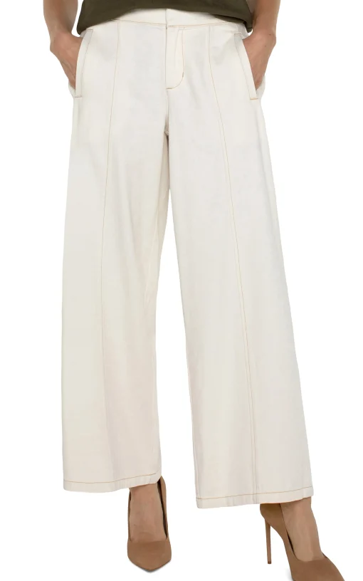 Our Wide Leg Trouser just got an upgrade! What sets these trousers apart? The elastic back waistband, of course! Combining comfort with style, this innovative design feature ensures a perfect fit every time, while allowing for ease of movement all day long in our premium rigid ecru twill fabric. DETAILS:28-1/2″ Inseam Mid-rise 10″ Front rise; 24″ Leg opening Functional slant welt pocketsZip-fly with hook and eye closure Elastic Back Waist Wide LegModel is 5’9” wearing a size 4Style #: LM4665QR4