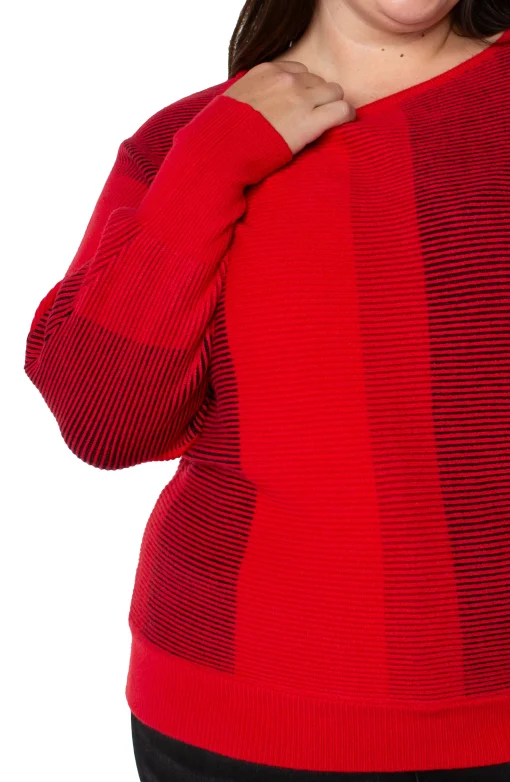 Make a fashion statement with this colorblocked dolman sweater! This sweater is both elegant and comfortable, perfect for a night out on the town or a cozy night in! Dress it up with your favorite denim or trousers. DETAILS:23″ HPSLong sleeveDolman sleevesBoat neckRelaxed fitColorblock knitModel is 5’9” wearing a size 1XStyle #: LY8B35SK13