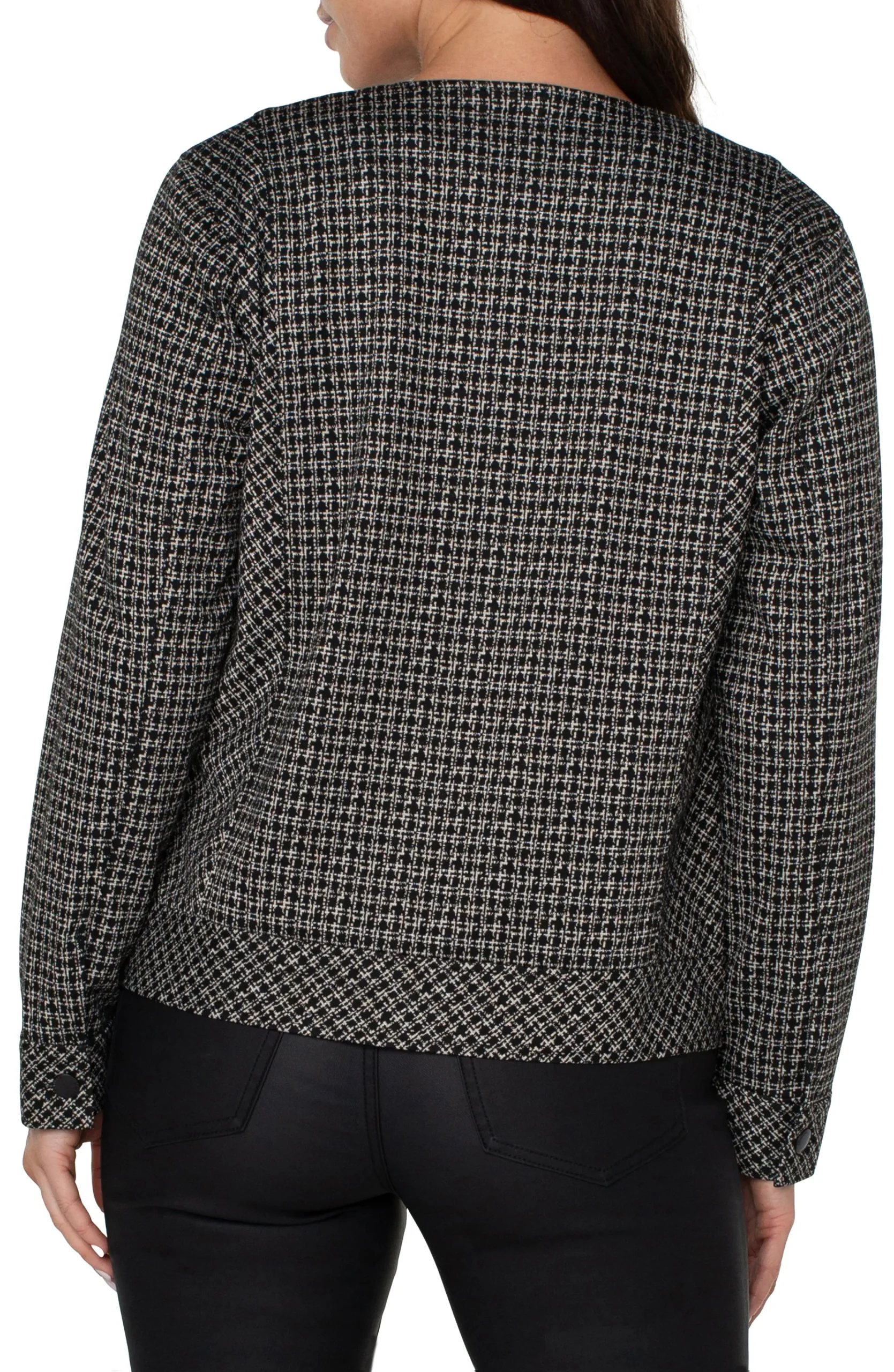 A versatile and fashionable jacket in our plaid jacquard knit. A unique item that can pull your outfit together! Pair it with the matching Kelsey Trouser for a polished all-in-one look, or your favorite denim. DETAILS:24-1/2” HPSCollarlessTwo front slash pocketsZipper closureBoucle KnitModel is 5’9” wearing a size SmallStyle #: LM1943TS92