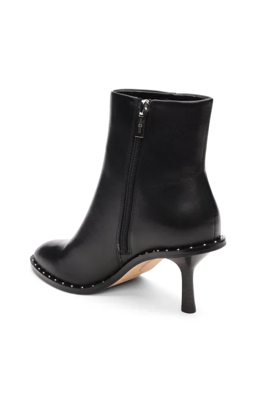 Step out in style with these round-toe ankle boots. Featuring a studded trim, these boots bring a touch of urban sophistication and personal style to any ensemble.DETAILS:3.” Heel5.1″ Shaft heightStilettoStudded weltAlmond toe shapePremium leatherinside zipperStyle #: 754095