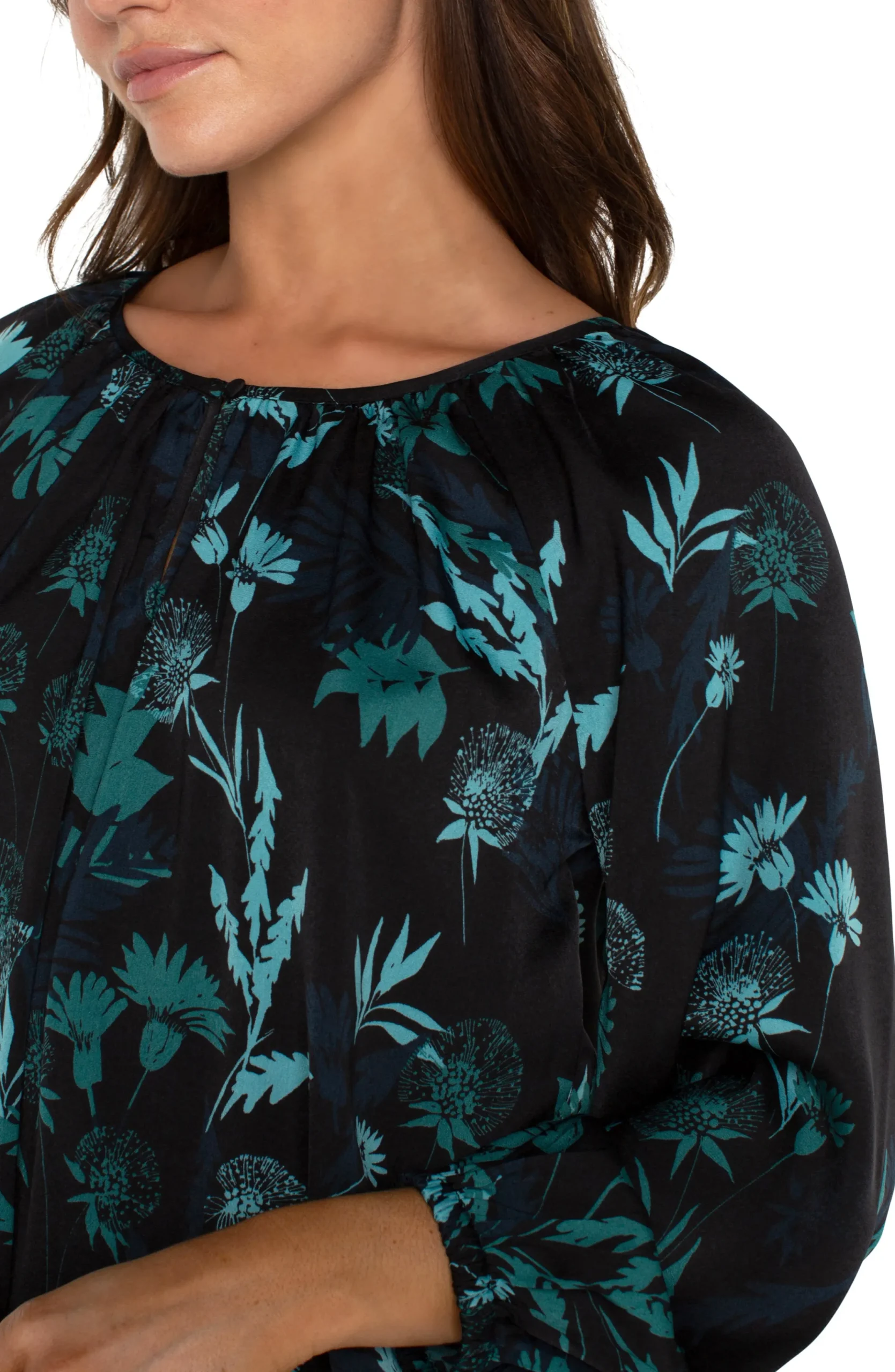 LONG SLEEVE SHIRRED WOVEN BLOUSE